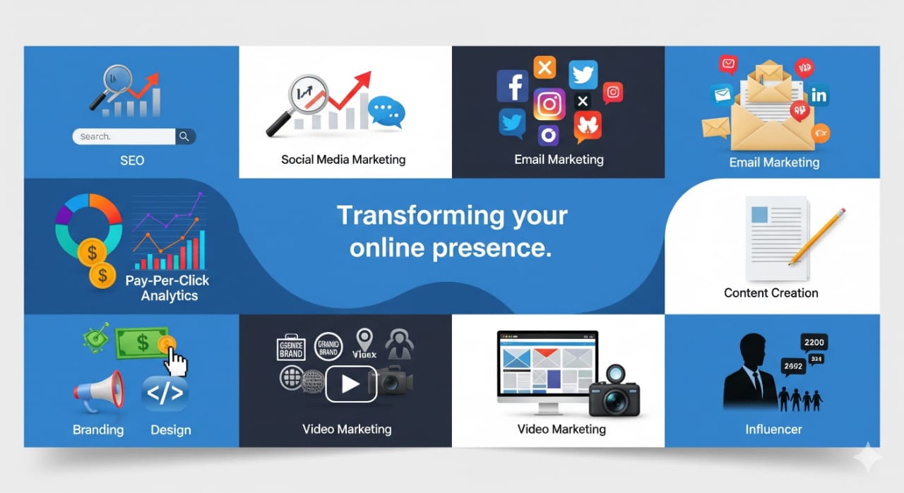 Boost your brand visibility with our customized digital marketing services. We specialize in SEO to improve Google rankings, social media marketing to enhance engagement, and PPC advertising to drive instant, targeted traffic — helping your business grow effectively online.